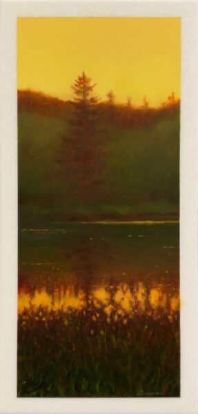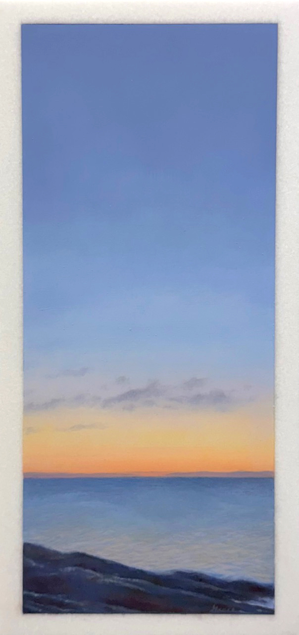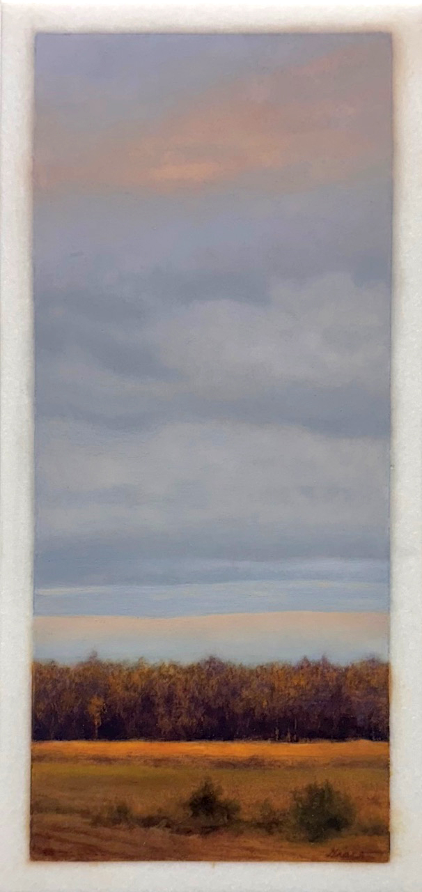 Inspired by what lies beneath the obvious, my paintings touch on the subliminal. It’s not the details that are highlighted, but the underlying moods and emotions. Painting in my studio, I use sketches and photos primarily as a starting point, relying more on intuition and memory for the process. By layering thin glazes of color onto the canvas or panel, the work is given a soft, diffused and ethereal quality. I’m drawn toward the abstract and minimal aspects of the landscape, which for me evoke a sense of peace and serenity, something I feel we all yearn for at times.