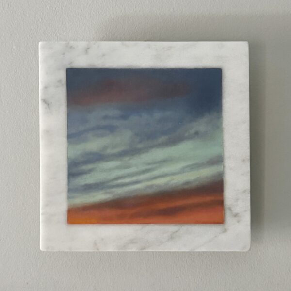 This series of work is a tribute to my dad. He was a collector of rocks and minerals since he was a child, and over time a passion for stone sculpting also took hold. He created many beautiful pieces over the years, some of which are my most prized possessions. Not long before he passed we collaborated on a piece, a column with carved patterns on three sides and a painting of a favorite pine tree on the face. I loved painting on the marble surface and the translucent effects I could achieve. And now, a few years after his passing, I’m inspired to continue. It’s one way I stay connected to him.