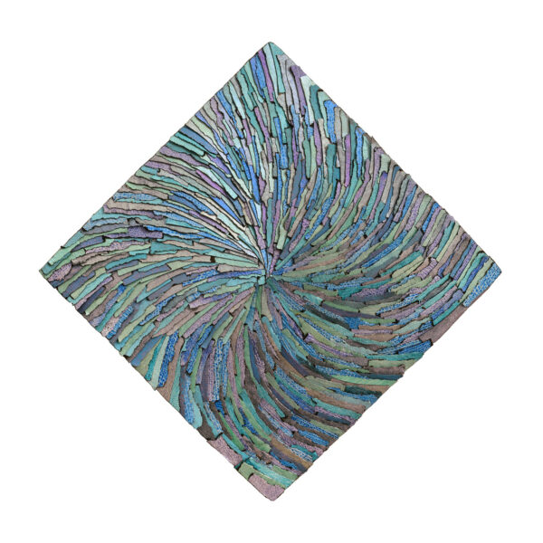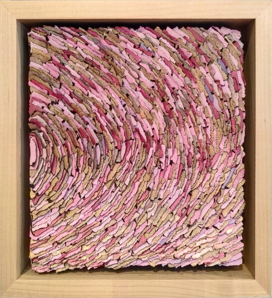 The common themes in every case are pattern, structure and the perception of space as it relates to the timeline of life. My artwork records that space or moment in time while incorporating the movement of energy residing there both human and elemental. Water currents and water lines, patterns of flocking birds called murmurations, and geological formations collect and disperse on my worked surfaces. The structure and patterns of domesticity, family, and history build as stacked forms in metal or hundreds of rocks cast in pulp as an homage to honor women.