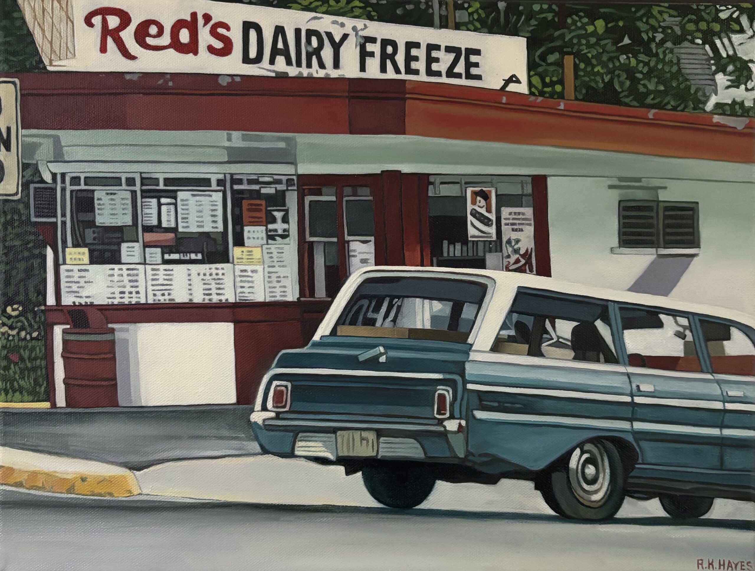 Ranging from scenes that reference the coast of Maine to the interiors of my childhood house, the subject matter of my work always seems to come back to my home in the Portland area of Maine. While I strive to create images with an authentically local perspective on this vacation destination, I don’t consider the actual scene depicted to be paramount when explaining the purpose of my work. Each subject I paint serves as a visual medium to explore various aspects of my personal painting style, which combines techniques from traditional realism with expressive, painterly sensibilities. This mixture of styles has been triggered by an overarching fascination with abstract nature of light and the way it inhabits a space. Through the use of photography as a reference, which I originally utilized to give myself the time to meticulously render detail, I have become intrigued by the patterns that emerge from light when it is forced to sit still, like in shadows and reflections. I also closely study the way light can dramatically affect the entire palette of an image, such as morning versus evening light, and natural versus man made. The environment of my life in Maine, both outside and in, provides countless scenes for me to examine the way light influences pattern and color, while maintaining a dedication to representational art.