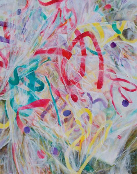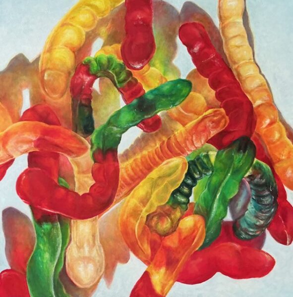 Diane Dahlke ‘Gummy Worms at Play’ Oil on Panel 30″ x 30″ $4800