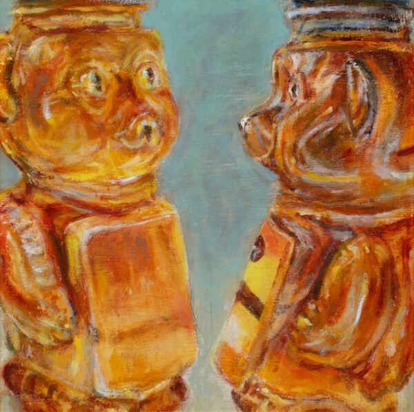 Diane Dahlke ‘Honey Bears Talking’ Oil on Panel 12″ x 12″ $500