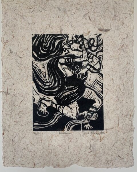 Joyce Ellen Weinstein ‘Miriam’ Linoleum Block Print on Handmade Paper 14″x17″ Framed $500