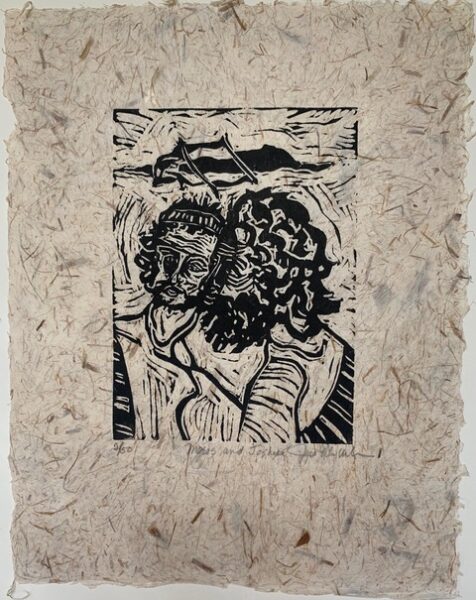 Joyce Ellen Weinstein ‘Moses & Joshua’ Linoleum Block Print on Handmade Paper 14″x17″ Framed $500