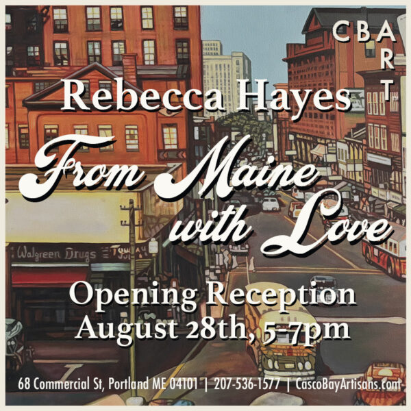 Through her stunning photo-realistic paintings, artist Rebecca Hayes takes us on a journey through Greater Portland history finding forgotten moments and cherished memories. In collaboration with historian Paul Ledman, author of “Walking Through History: Portland, Maine on Foot” and  “Portland, Maine: Connections Across Time,” Hayes has brought her sharp brush work and eye for color to iconic locations including Harbor Fish Market, Red’s Dairy Freeze, and Congress Square. Each painting will be accompanied by text from Ledman for historical context.